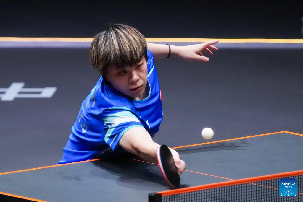 Wang Yidi competes during the women's singles round of 16 match between Sun Yingsha of China and Wang Yidi of China at the WTT Finals Hong Kong 2025 in Hong Kong, south China, Dec. 11, 2025. (Xinhua/Zhu Wei)