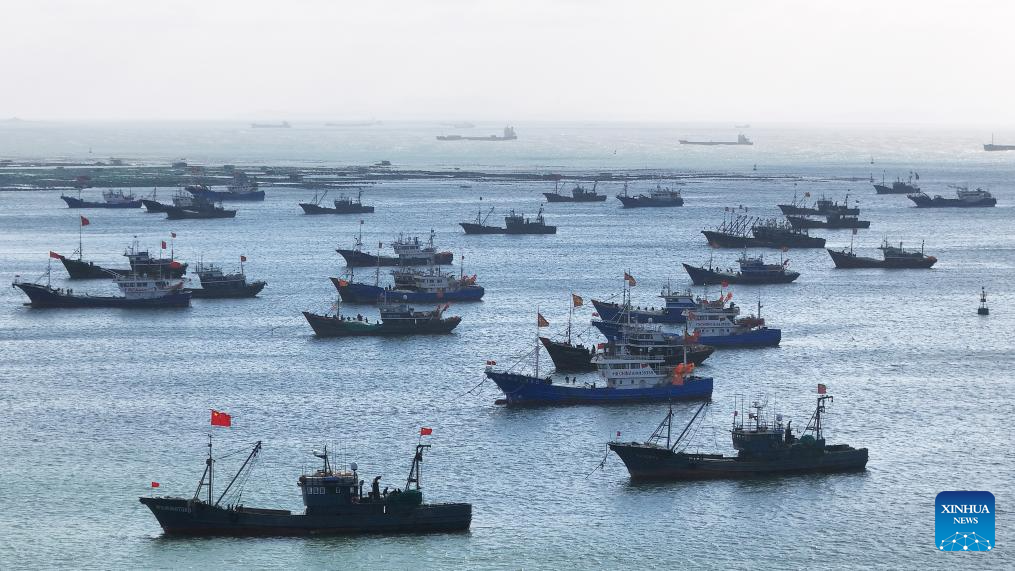 Fishing boats berth at a port at Zhifu Bay Area of Yantai Port in east China's Shangdong Province, Dec. 11, 2025.