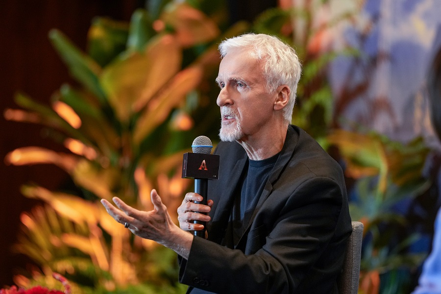 Filmmaker James Cameron speaks at a masterclass during the 7th Hainan Island International Film Festival in Sanya, Hainan province, Dec. 9, 2025. [Photo courtesy of The Walt Disney Company]