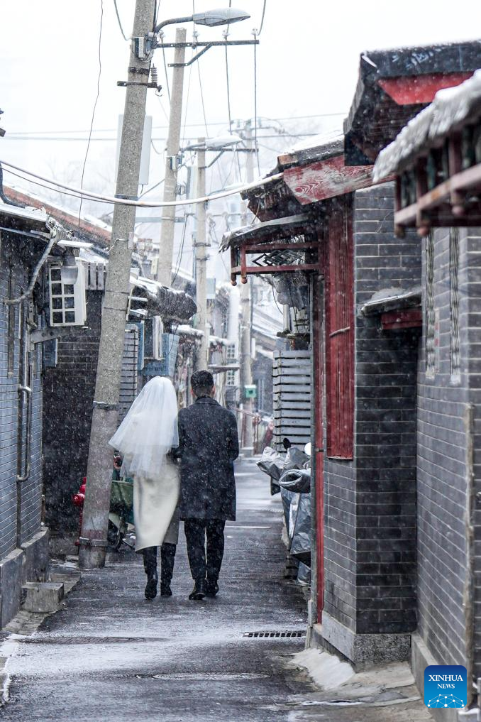 Pedestrians walk amid snowfall in Beijing, capital of China, Dec. 12, 2025. Beijing witnessed its first significant snowfall of this winter season on Friday. (Xinhua/Bi Xiaoyang)