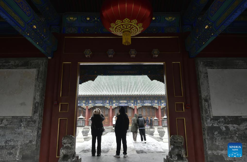 Tourists visit Prince Kung's Palace Museum amid snowfall in Beijing, capital of China, Dec. 12, 2025. Beijing witnessed its first significant snowfall of this winter season on Friday. (Xinhua/Lu Peng)