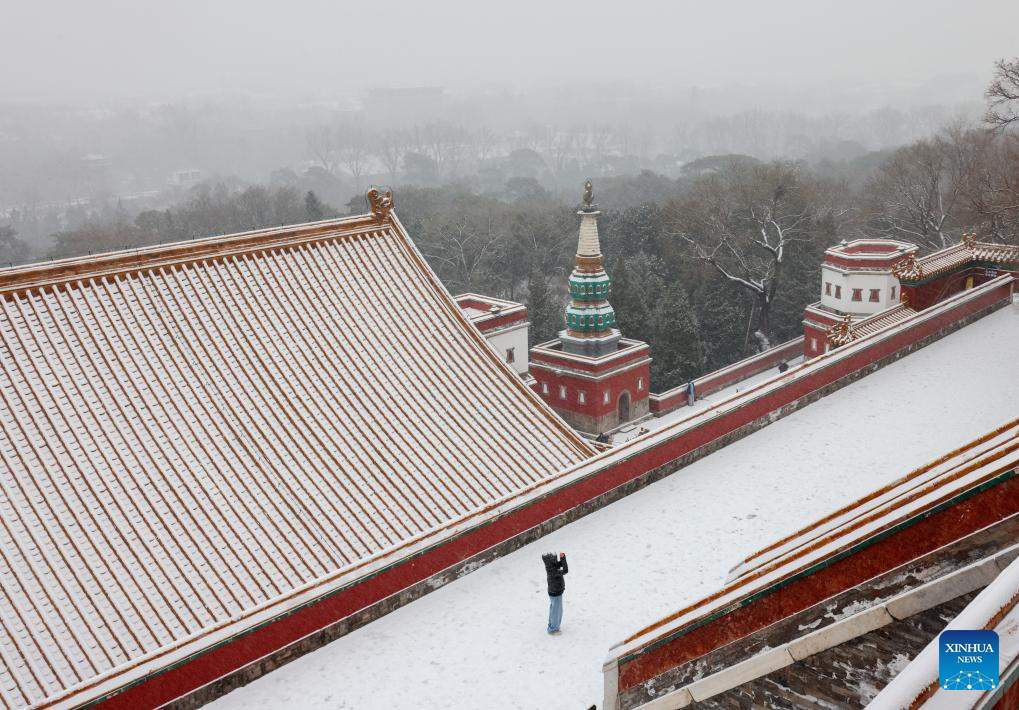 This photo taken on Dec. 12, 2025 shows a view of the Summer Palace amid snowfall in Beijing, capital of China. Beijing witnessed its first significant snowfall of this winter season on Friday. (Xinhua/Yin Gang)