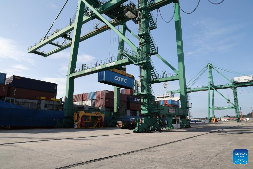 A container vessel operated by Shandong International Transportation Corp. (SITC) docks at Muara Port in Brunei, Dec. 13, 2025. (Xinhua/Li Meng)