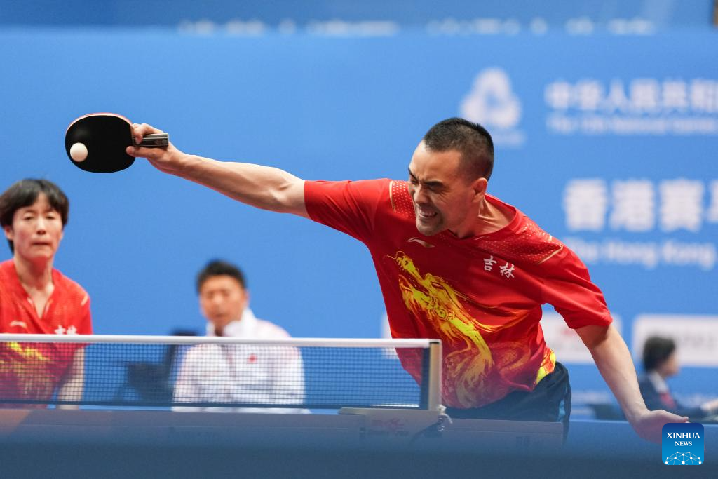 Chai Qingyou(R)/Guo Yumin of Jilin compete during the mixed doubles category TT11 table tennis match at China's 12th National Games for Persons with Disabilities and the 9th National Special Olympic Games in Hong Kong, south China, Dec. 13, 2025. (Xinhua/Zhu Zheng)