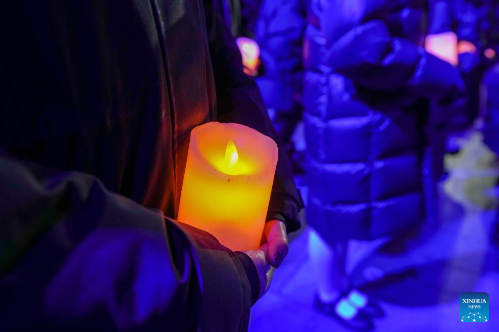 People attend a candle-light vigil at the Memorial Hall of the Victims in Nanjing Massacre by Japanese Invaders in Nanjing, capital of east China's Jiangsu Province, Dec. 13, 2025. A candle-light vigil was held at the memorial hall on Saturday, which was the 12th national memorial day for the victims of the Nanjing Massacre. (Xinhua/Li Bo)