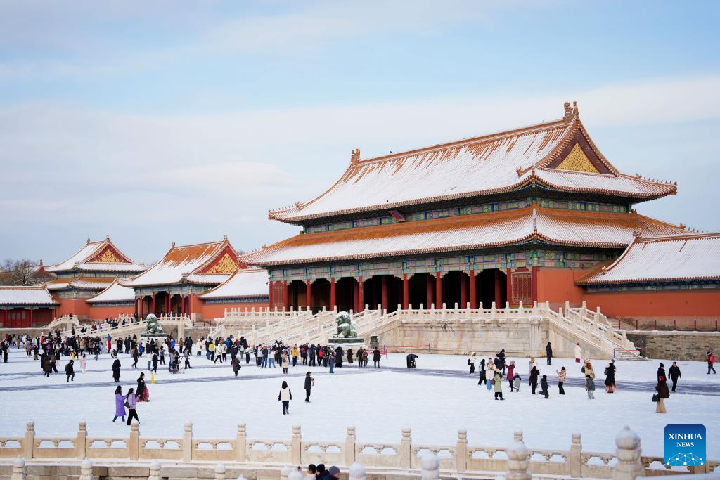 Tourists visit the Palace Museum after snowfall in Beijing, capital of China, Dec. 13, 2025. (Xinhua/Ma Xiaodong)