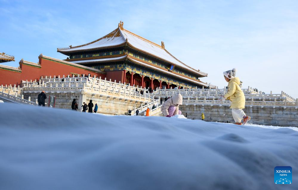 Tourists visit the Palace Museum after snowfall in Beijing, capital of China, Dec. 13, 2025. (Xinhua/Jin Liangkuai)