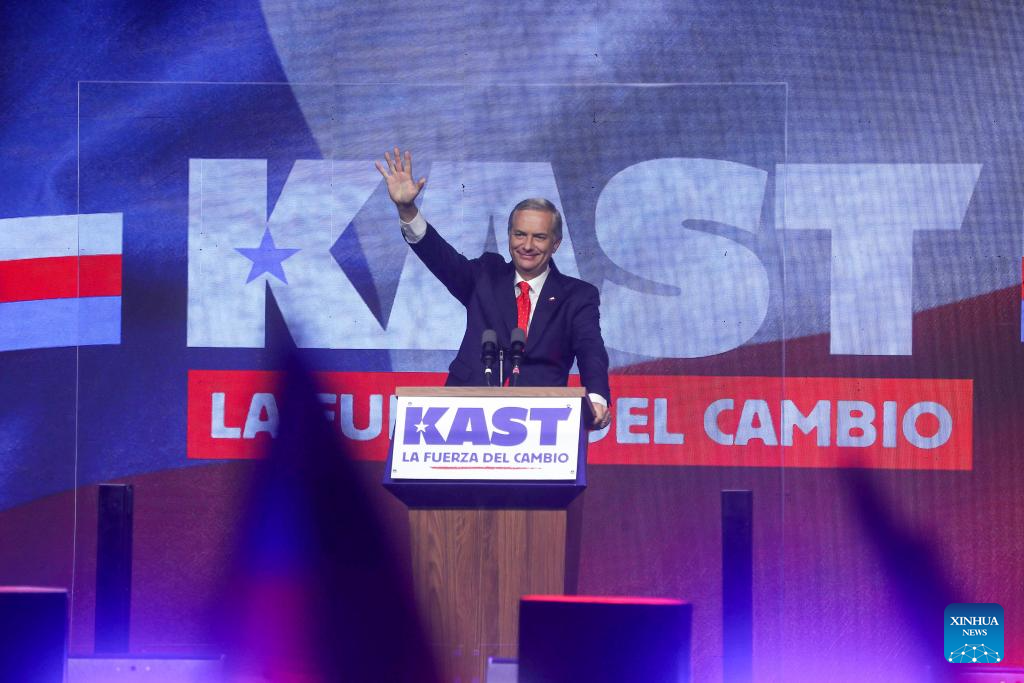 Jose Antonio Kast, presidential candidate of the far-right Republican Party, won the Chilean presidential runoff election, becoming the country's new president, said the electoral authorities on Sunday.
