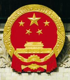 national emblem of the PRC features Tiananmen Gate beneath the