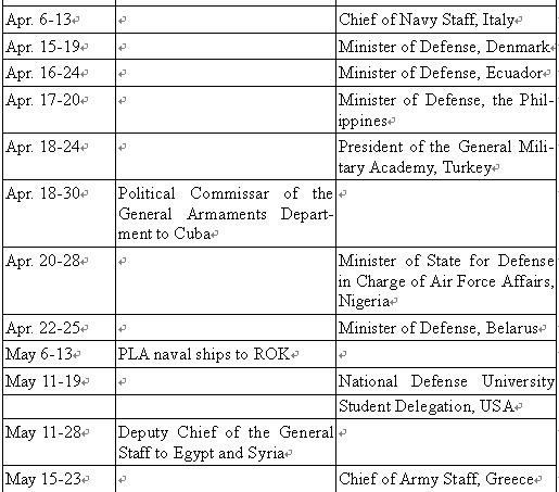 Appendix II Major Military Exchanges with Other Countries in 2001-2002