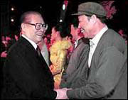 Jiang Zemin and other Chinese leaders including Li Peng, Zhu Rongji, Li Ruihuan, Wei Jianxing and Li Lanqing, arrived at the theater at 7:45 pm to a hearty round of applause.