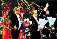 The Three Tenors, Luciano Pavarotti, Placido Domingo and Jose Carreras, tonight had eyes from around the world glued onto this remote and ancient country, reminding the audience of Marco Polo, who traveled to Beijing 700 years ago. But songs have replaced travel notes.