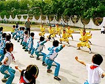 Indeed, if they are looking for a qualified wushu coach, students at the Longwu school are getting more than their money's worth. Alvin Guo, who teaches both Shaolin Long Fist and Taiji Chuan, began practicing wushu at six years old, in Shanghai's parks.
