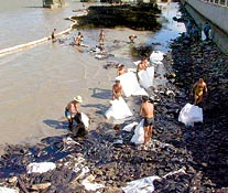 Though oil spill professionals were called to the site immediately to prevent the spread of the spill and huge quantities of oil have been removed, the spread of the spill along a more than 10-kilometer-stretch of water still poses a serious problem for authorities.