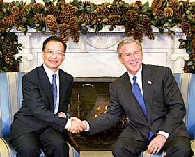 On Sino-US trade relations, Wen said the expansion of China's economic cooperation and trade with the United States has not come by easily. Trade between the two countries was less than US$2.5 billion 25 years ago, but the annual volume now has exceeded US$100 billion.