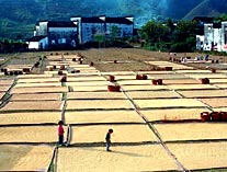Then, compared with 2000, the country's grain output further downed by 1.9 per cent to slightly exceed 450 million tons in 2001, according to official statistics.