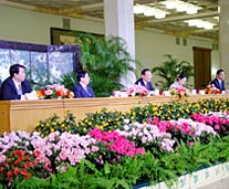Chinese Foreign Minister Tang Jiaxuan held a press conference of the First Session of the 10th National People's Congress in the Great Hall of the People in Beijing Thursday afternoon.