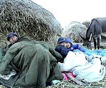 A total of 7,454 families in Minle County have been affected by the quakes. Some of the homeless took shelter in wheat stacks overnight before the tents arrived.