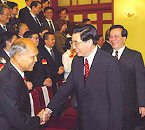 Vice President Zeng Qinghong, Vice Premier Wu Yi and State Councilor Tang Jiaxuan were among those senior officials present at the meeting with the delegation, including business tycoons Henry Ying Tung Fok, Li Ka-shing, Lee Shau-kee and Cheng Yu-tung.