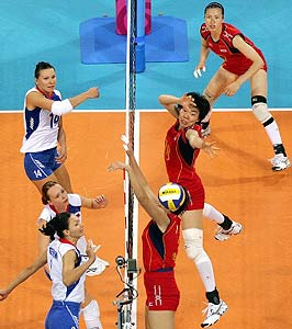 Russia made their last try at 11-12, but China started to gain the ascendancy, Yang Hao's consecutive points gave them the set. China eventually sealed the match with a Zhang Yuehong's excellent spike to fantastic scenes of jubilation.