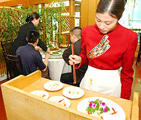 "Our waiters divide food into dishes before serving each guest at a banquet. It has always been separate serving, no matter before or after SARS," says Xing Ying, vice-general manager of China Beijing Quanjude Group Co Ltd, famous for roast Peking duck.