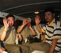 Chinese Vice-Minister of Communications Feng Zhenglin greeted the returned engineers at the airport.