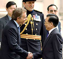 Earlier in the day, Blair hosted a Guard of Honor ceremony for Wen in the Quadrangle in the compound of the British Office, before holding talks with Wen.