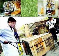 This is the second pair of cubs from the Shanghai zoo to be sent for tiger training in South Africa. In September 2003, another male and female made the journey.