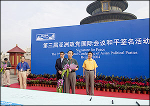 On Sunday, September 5, more than 300 delegates to the Third International Conference of Asian Political Parties (ICAPP), representing 81 political parties and organizations of 35 Asian countries, gathered at the Temple of Heaven Park in Beijing to sign for peace.