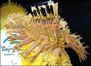 The entertainment part of the closing ceremony was canceled except the eight-minute performance of the Chinese handicapped artists due to a car accident which killed at least seven students on Monday morning.