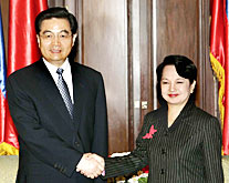 Arroyo spoke highly of Hu's suggestions, saying bilateral ties "are in a golden age." She said the Philippines is willing to join efforts with China in expanding cooperation in the fields of resources.
