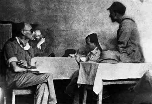 Epstein (second right) with Dr. George Hatem (Ma Haide) (first right) visiting the Yan'an International Peace Hospital (1944).