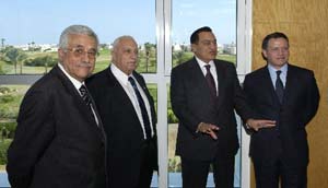 He also urged all parties concerned not to allow violence to sabotage the new opportunity for achieving just and comprehensive peace. "We in Israel have to painfully wake up from our dreams, and we're determined to overcome all the obstacles which might stand in our path in order to realize the new chance which we have created," said Sharon. In his speech, Palestinian National Authority Chairman Mahmoud Abbas echoed Sharon's announcement, declaring the Palestinians would cease all acts of violence against Israelis. "We have agreed with Prime Minister Ariel Sharon to cease all acts of violence against the Israelis and the Palestinians wherever they are," Abbas said. "Peace means the establishment of a democratic Palestinian state alongside Israel," he added. Earlier, Egyptian President Hosni Mubarak told reporters that he welcomed the "determination and willingness" of both sides. "We have seen today a positive step... the determination and willingness to work together seriously and sincerely to implement their mutual obligations, and take required measures to restore confidence," Mubarak told reporters. Egyptian Foreign Minister Ahmed Abul Gheit said earlier that the four-way Mideast summit would play a decisive role in resuming the stalled Palestinian-Israeli peace process.