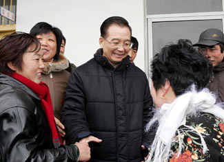 Braving the chilly winds and treading on snow-covered muddy roads, Wen came to a rural clinic in the Nandawu Village of LugangTown Tuesday morning. He asked the medical workers about how the AIDS patients are treated and encouraged the patients to be self-confident and follow doctors' advice.