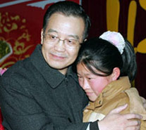Before the dinner, Wen inspected carefully the bedrooms, classrooms and reading room of the orphans, who entertained him with a performance. The premier also called on the old people there.