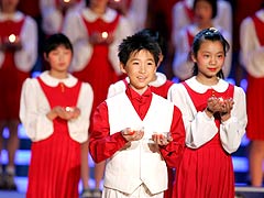 Hong Kong heartthrob Nicholas Tse sang the well-known theme "Chinese People" to a nearly full house of about 6,000 people who waved glow sticks, clapped and sang along at the Workers' Gymnasium in Beijing.