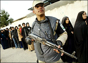 In the Kurdish-dominated north and the mostly Shiite south, the turnout is overwhelming. However, few Iraqis are voting in Sunni areas due to lack of security and calls for a boycott from some Sunni parties hostile to the military presence of the US and UK.