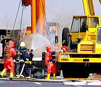 The truck carrying the chemical overturned, dumping the tanks on the road. Rescue and recovery teams have moved the tanks into a pond to prevent further spread and gasification of the chemical.