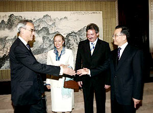 After meeting with Premier Wen Jiabao, three EU diplomats, in Beijing for two days, also held talks with Foreign Minister Li Zhaoxing.