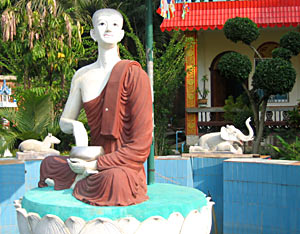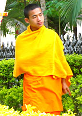"To be a monk student, you cannot smoke cigarettes, drink alcohol, stay out late or play billiards outside," said the 17-year-old sweeping the Buddhist temple courtyard planted with talipot palms, bodhis and other tropical and subtropical trees, "Otherwise you will be fined 100 yuan (US$12)."