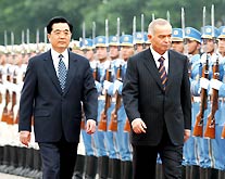 Hu said the two countries should try to promote cooperation in the fields of oil, gas, mining, telecommunications, transportation and infrastructure construction.