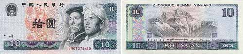 Chinese currency is called Renminbi (people's money), often abbreviated as RMB. Issued by the People's Bank of China it is the sole legal tender for both the Chinese nationals and foreign tourists. The unit of Renminbi is yuan and the smaller, jiao and fen. The conversion among the three is: 1 yuan = 10 jiao =100 fen. Chinese people normally refer to Yuan as Kuai, Jiao as Mao. RMB is issued both in notes and coins. The denominations of paper notes include 100, 50, 20, 10, 5, 2 and 1 yuan; 5, 2 and 1 jiao; and 5, 2 and 1 fen. The denominations of coins are 1 yuan; 5, 2 and 1 jiao; and 5, 2 and 1 fen.