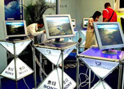 High distinct plane screens manufactured by the Sony Company are on display at the 2002 Huanan (south China) International Information Technology (IT) Fair opened in Guangzhou, capital of south China's Guangdong Province June 19, 2002. About 200 Chinese and foreign IT enterprises showed their latest models of high-tech products in the fair.