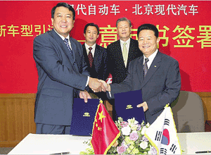Hyundai Motor signed an agreement on Wednesday with Beijing Automobile Industry Holdings to produce its Tuscon model through their joint venture Beijing Hyundai Motor in China this December.