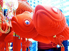 Walking along downtown streets, one can see the traditional Chinese red lanterns hanging high in big shopping centers and gardens to add the festival atmosphere.