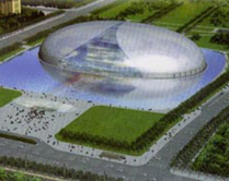 The oblong shell, depicting a sparkling pearl on water, will cover the three major performance halls with a total area of 149,500 square meters.