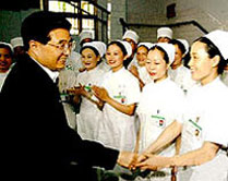 Hu sent the greetings for International Nurses Day from the People's Hospital of Fushun County, Zigong City of southwest China's Sichuan Province, during his inspection tour of SARS control in rural areas.