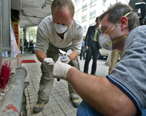 They have swept through the man's apartment interviewing people and looking for possible modes of infection in water systems, garbage facilities and living quarters.