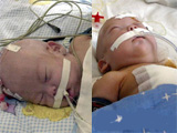 The twins were joined at the chest and abdomen. Their livers, ribs and midriff were almost completely linked.