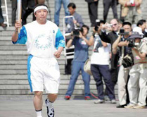 Yu Zaiqing, vice-president of the Chinese Olympic Committee and a member of the International Olympic Committee, is the first torch bearer of the Beijing relay and China's NBA star Yao Ming is the last.